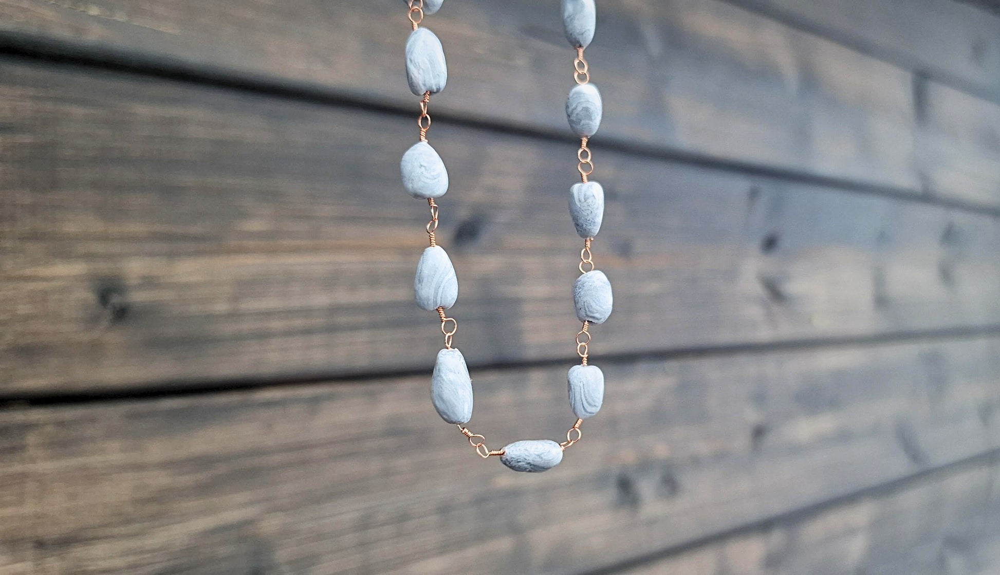 Perlekjede med marmorerte perler i naturlige farger