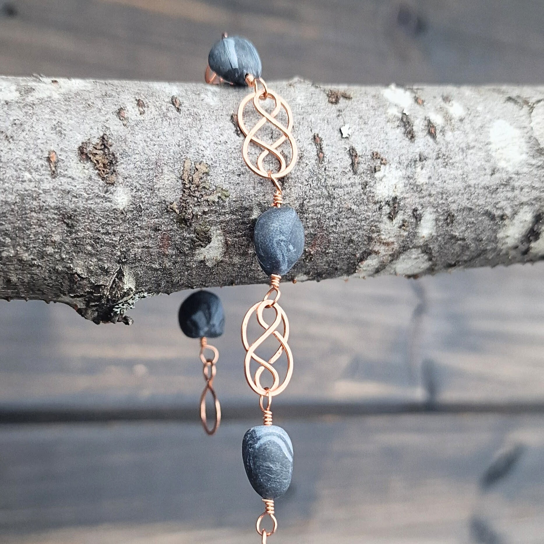 Keltisk inspirert kobberarmbånd med svarte perler med sølvmarmorering