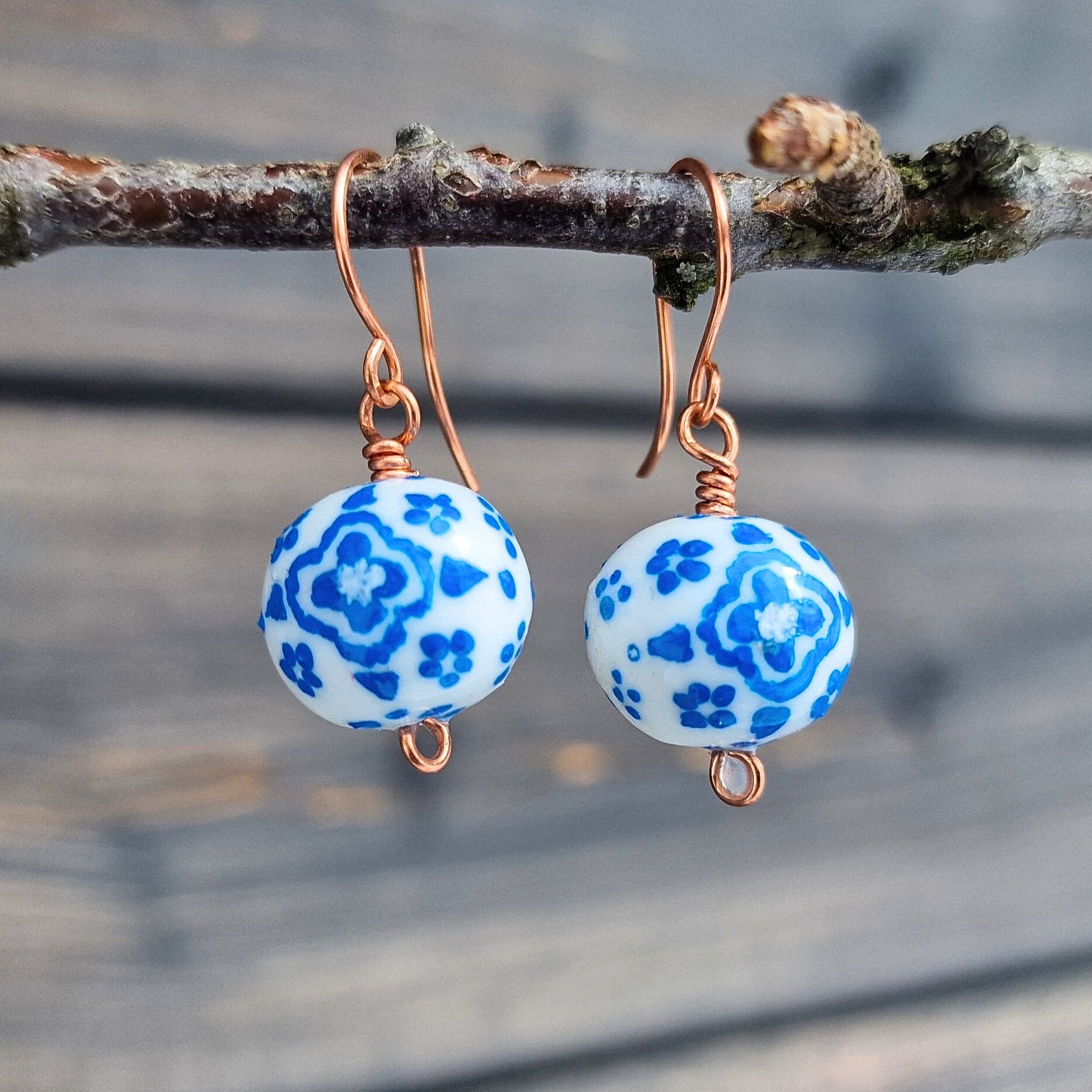 Vakre håndmalte øredobber i porselens-design
